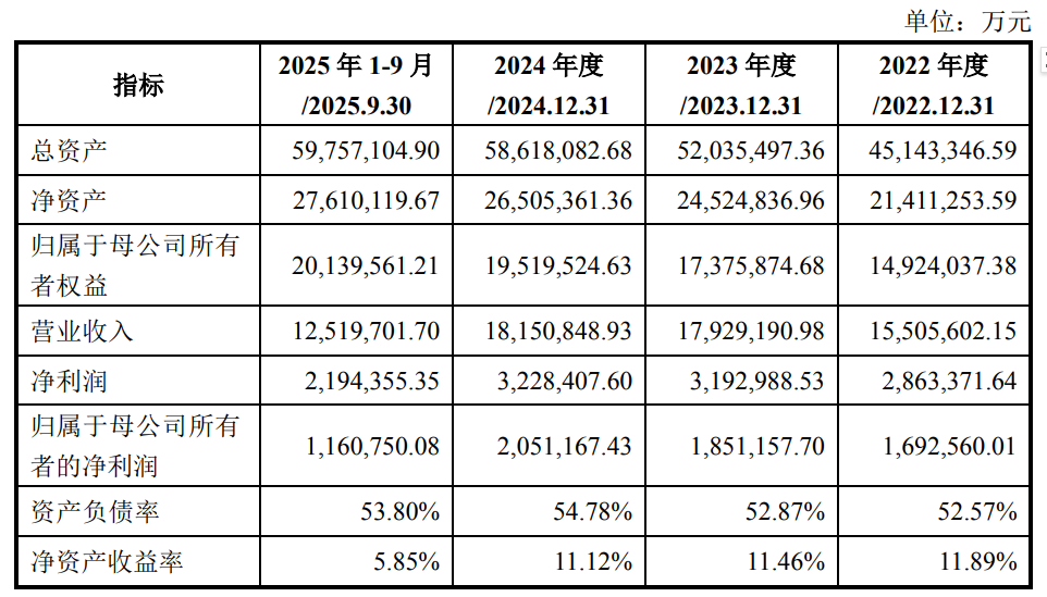 宜宾发展实力雄厚,除了天原股份外,旗下还控股或参股了包括五粮液(持股比例55.08%)、宜宾纸业(持股比例44.87%)、新晨动力(持股比例31.20%)、宜宾银行(持股比例16.99%)在内的多家上市公司,构建了庞大的产业版图。财务数据显示,2022年至2024年及2025年前三季度,宜宾发展实现营业收入1550.56亿元、1792.92亿元、1815.08亿元、1251.97亿元,归母净利润169.26亿元、185.12亿元、205.12亿元及116.08亿元,经营稳健。截至2025年9月底,宜宾发展资产总额达到5975.71亿元,净资产为2761.01亿元。