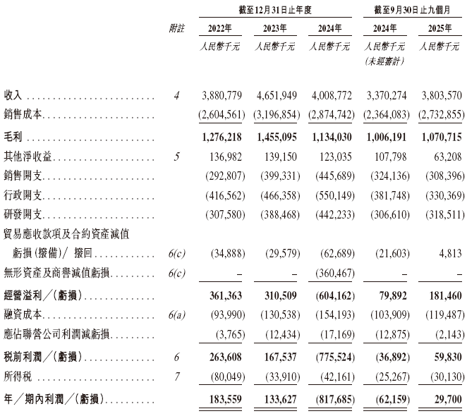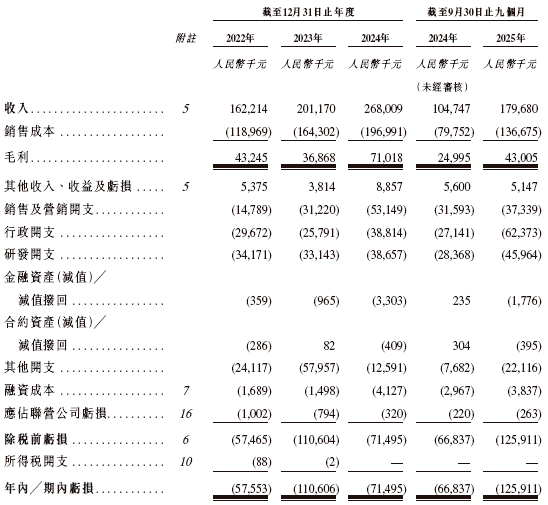 从财务数据来看,翼菲智能近年营收呈稳步增长态势:2022 年营收 1.62 亿元,2023 年增至 2.01 亿元,2024 年进一步攀升至 2.68 亿元,2025 年前九个月也收获了 1.80 亿元的营收。但与之相对的是,企业仍未摆脱亏损局面,同期净亏损分别为 0.58 亿元、1.11 亿元、0.71 亿元和 1.26 亿元;经调整后净亏损分别达到5280万元、1.06亿元、5230万元及7820万元。