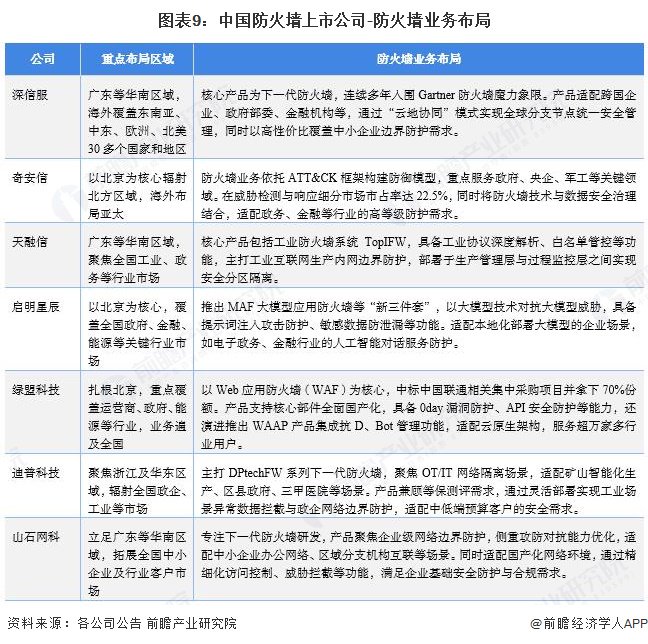 本文核心数据:防火墙行业上市公司汇总;业务布局;业绩对比;业务规划。