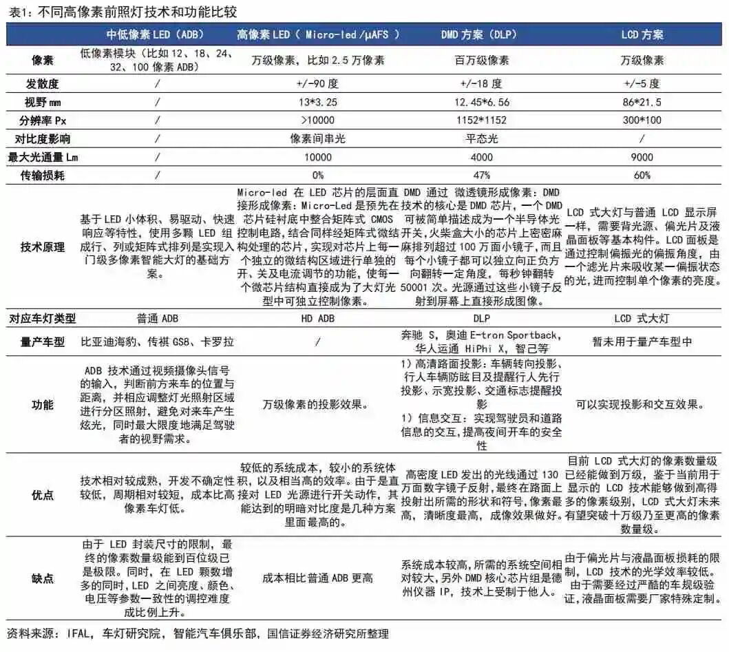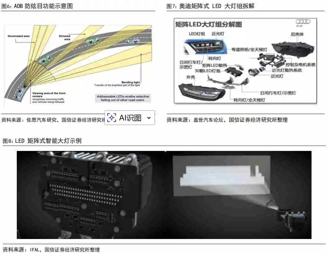 1)ADB 车灯(矩阵式LED)——中低价位车型已量产应用