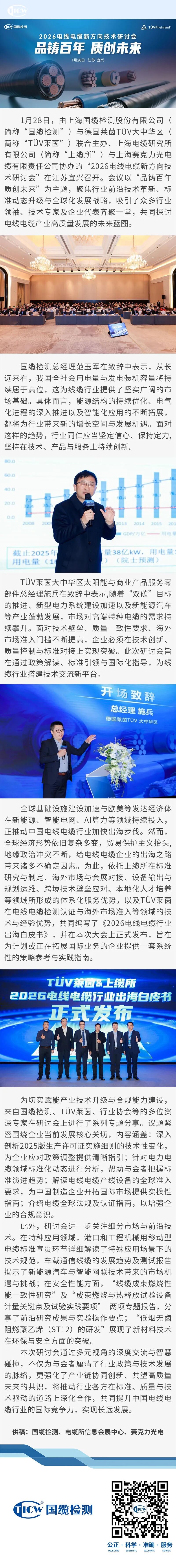 国缆检测与TÜV莱茵联合举办“2026电线电缆新方向技术研讨会”,共探产业革新与全球发展