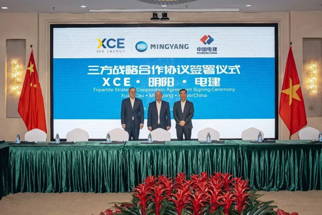 近期,明阳集团董事长张传卫、越南春桥集团(XCE 能源股份公司为其子公司)董事长苏勇、中国电建国际公司亚太区总经理周家义在明阳集团全球总部进行会晤,并达成战略合作共识,敲定中越跨境零碳能源合作重大布局。
