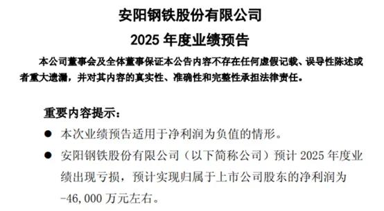 对于2025年的亏损,安阳钢铁表示,主要原因是:
