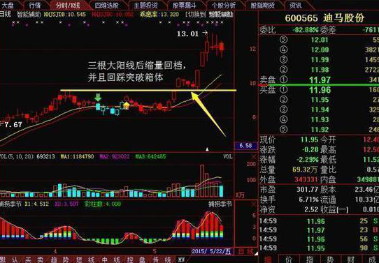 我们不仅仅为了追求回档成功,而是要回档成功后的涨幅空间越大越好。因此一定是缩量回调最好,并且回调的力度逐步减小,最后是以小字星的方式来止跌。