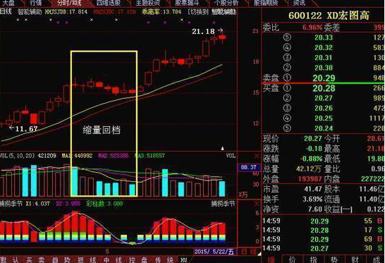 1、上升回档强势运用之一:缩量回档