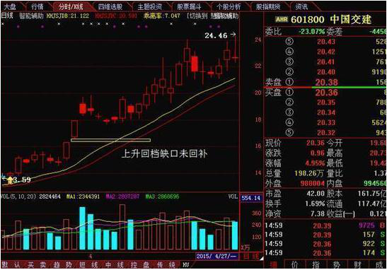 第二种是缩量回档后出现了跳空缺口,缺口出现回档启动发力的时候,由于是回档后的缺口,意味着回档后的走势会比回档前更为强势,通常来说需要一定程度的追涨。