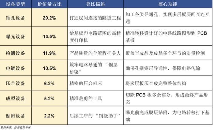 在 PCB 制造流程中,钻孔是设备价值量最高的工序之一。东吴证券测算,在普通 PCB 产线中,钻孔设备价值量占比通常超过 20%;在高端 HDI 产线中,该比例可提升至 30%—40%,成为决定单线投资额的关键环节。
