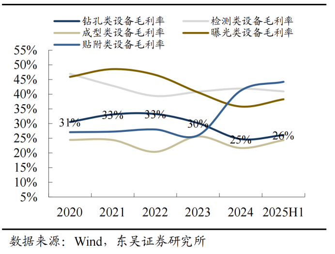 这也直接体现在大族数控的收入结构中。过去五年,钻孔类设备始终贡献公司过半营收,是名副其实的“基本盘”。