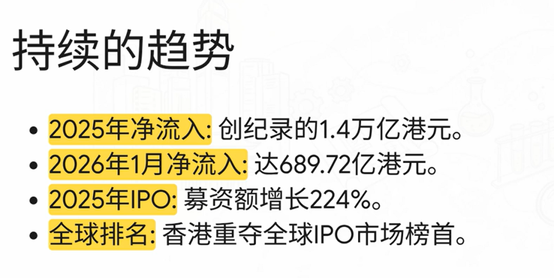 2025年全年,港股IPO募资额达2856亿港元,较2024年的881亿港元大幅增长224%,时隔4年后重登全球IPO市场榜首。特别是来自欧美、中东和新兴市场的国际长线资金积极参与港股科创企业的新股发行,反映出国际市场对中国科技创新的高度关注与信心。外资回流背后,更是全球资产配置逻辑正在发生深刻转变。