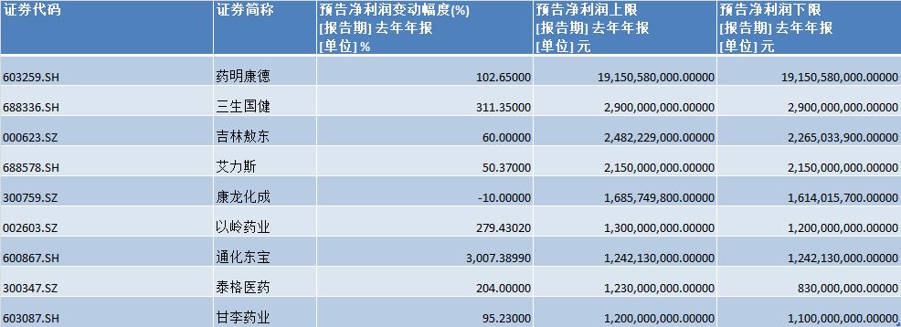 Wind数据显示,截至1月31日,共有283只医药股披露了2025年业绩预告。按预告归母净利润上限看,共有160只个股归母净利润同比增长,其中赛诺医疗成为A股药企“预增王”,最高预增逾32倍。药明康德预计实现净利规模最大,为191.51亿元,这也将创下药明康德上市以来的归母净利润新高。