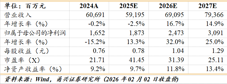 (3)25Q3业绩环比改善。据Wind,公司2025年前三季度营业收入为436.41亿元,同比-0.83%,归母净利润为12.63亿元,同比-2.60%;25Q3营业收入为164.27亿元,环比+21.10%,归母净利润为6.25亿元,环比+106.26%。