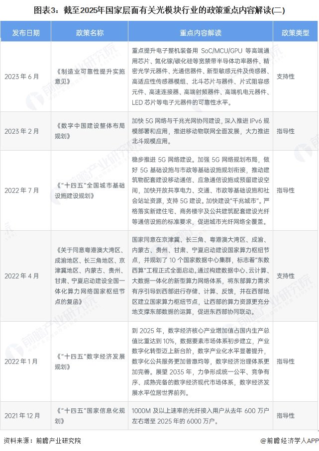 ——国家层面光模块行业政策汇总