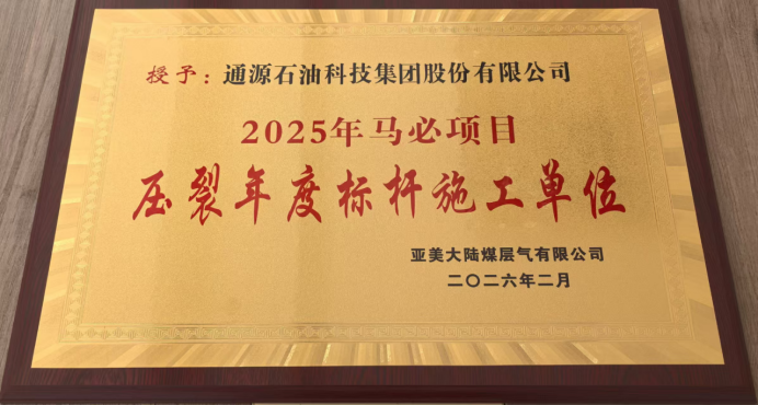 近日,集团凭借在煤层气项目的优异表现,荣获客户亚美大陆煤层气有限公司颁发的“2025年马必项目压裂年度标杆施工单位”奖项。这份荣誉不仅是客户对集团煤层气业务全年施工工作的高度认可,更是对集团在煤层气领域技术实力与服务水平的充分肯定。