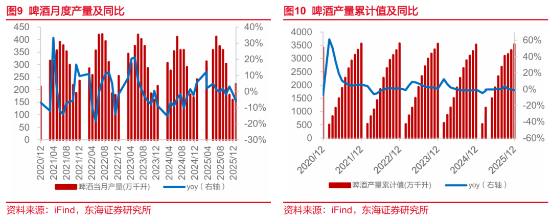 中国规模以上啤酒企业2025年12月产量为222.7万千升,同比-8.7%。2025年1-12月中国规模以上啤酒企业产量累计3536.0万千升,同比-1.1%。