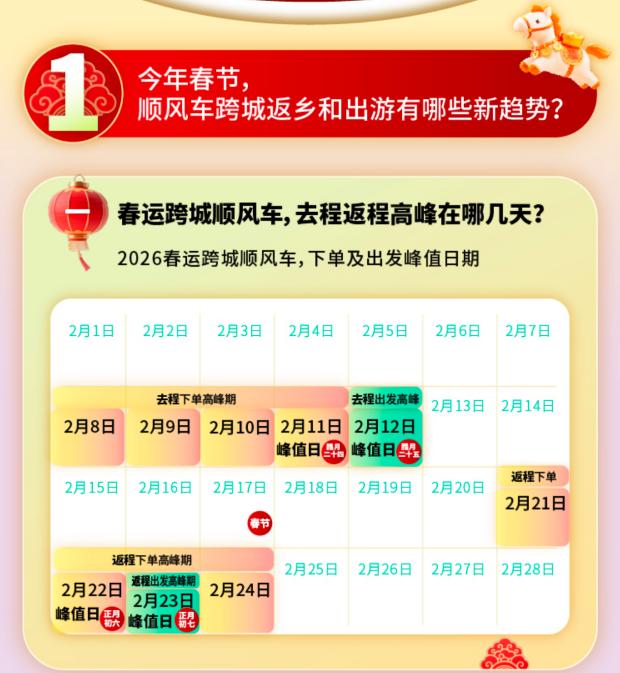 · 跨城顺风车返乡下单高峰将从2月8日开始