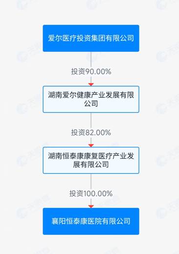 天眼查信息显示,襄阳恒泰康为爱尔医疗旗下成员之一,爱尔医疗对襄阳恒泰康存在间接控股。具体来看,襄阳恒泰康由湖南恒泰康康复医疗产业发展有限公司100%控股;而湖南爱尔健康产业发展有限公司又持有湖南恒泰康康复医疗产业发展有限公司81.9978%的股权;最终,爱尔医疗通过持有湖南爱尔健康产业发展有限公司90%的股权,实现了对襄阳恒泰康的间接控股。