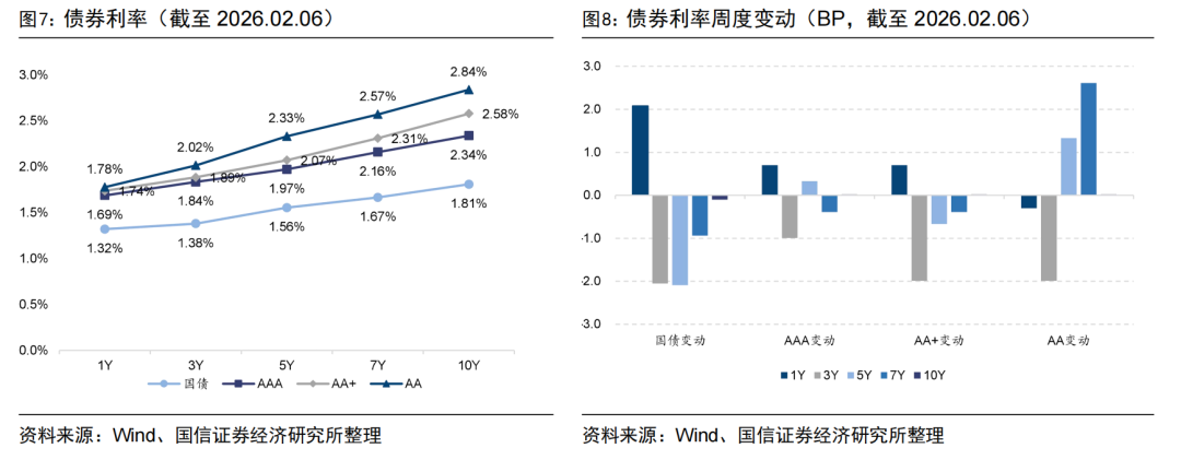 信用利差方面,除1年期外,不同期限不同评级的信用债利差均有所上行。