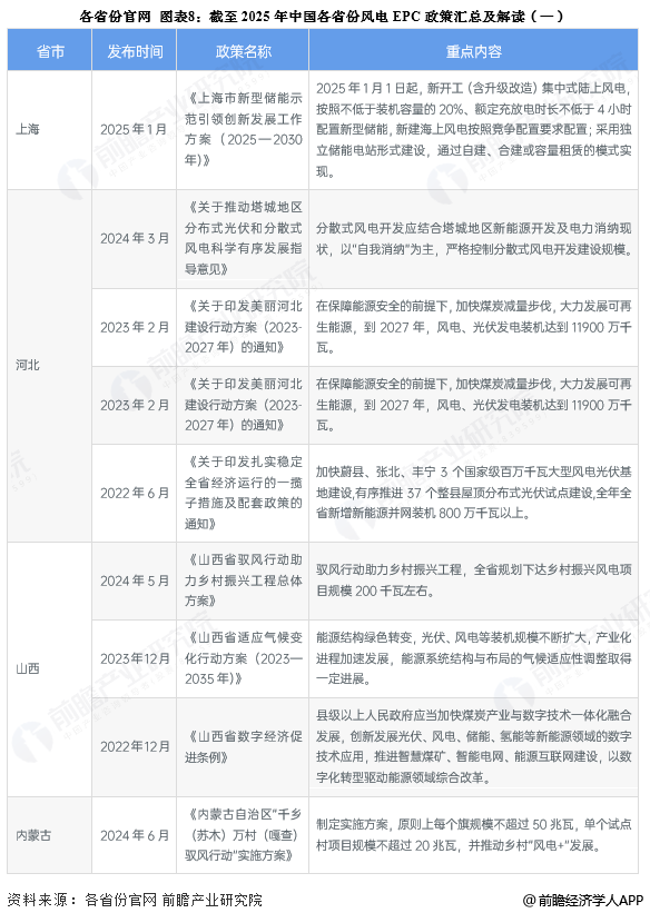 除了中共中央、国务院等部门颁布一系列政策外,各省市同样出台了一些举措来促进风电以及EPC行业的发展。
