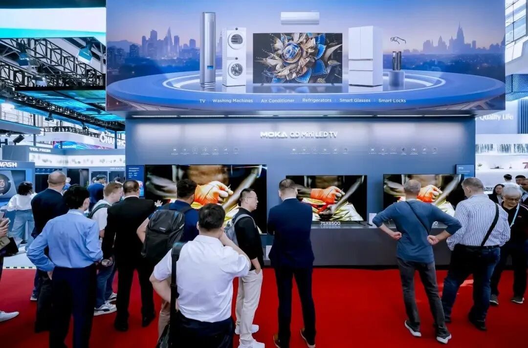 在第137届广交会上,茂佳展示了三大品类电视产品——QD-Mini LED电视、AI智能电视、AI艺术电视,包括全球最大的115”X8000 UMAX私人影院。以及AGLR高雾度低反射屏、LR0.5低反射屏等屏幕技术。