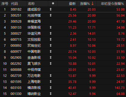 今天影视板块掀起涨停潮,捷成股份、光线传媒、幸福蓝海、中国电影、金逸影视等多股涨停。