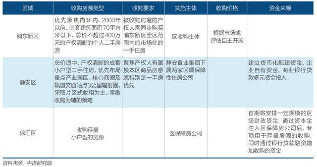 首批试点区域为静安区、浦东新区和徐汇区,收购的实施主体均为区属企业。收购聚焦小户型房源,浦东新区优先侧重2000年以前小户型低总价二手房,静安区侧重交通便捷、居住配套成熟的二手房源。