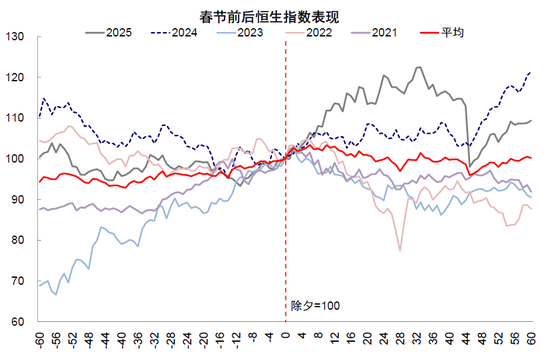 图表:近五年春节期间港股平均上涨2%