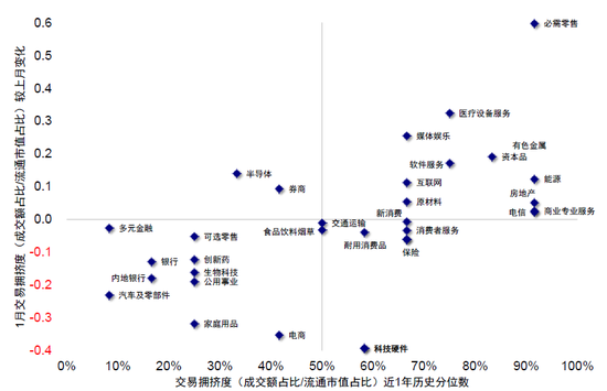图表:基于基本面和交易维度,短期建议关注必需零售、科技硬件、新消费