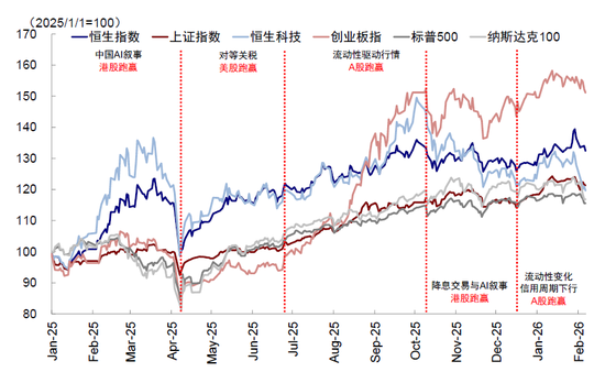 回顾看,港股在“跑赢”与“跑输”间循环往复,并非毫无规律,行情切换逻辑根植于基本面、流动性、特色结构三个维度。当流动性收紧、特色结构不受关注或基本面偏弱时,港股往往跑输,反之跑赢。2月以来,港股尤其是恒生科技大跌,也正源自这三方面的变化: