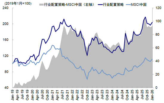 图表:行业配置策略累计收益大幅超过MSCI中国指数