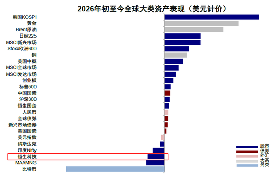 2026开年以来,港股整体跑输,尤其是作为“核心资产”的恒生科技表现“垫底”。虽然看似恒指与上证综指表现差异不大,但宽基指数本就掩盖了结构上的较大“方差”,例如元旦后A股迎来17连阳的“开门红”,相比尤为强劲的景气赛道,港股却明显落后(《A股与港股谁“错”了?》)。