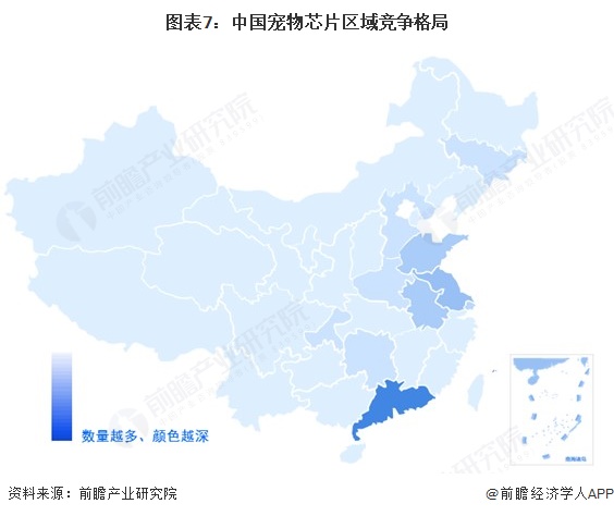 1、 区域竞争:宠物芯片企业集中在广东省