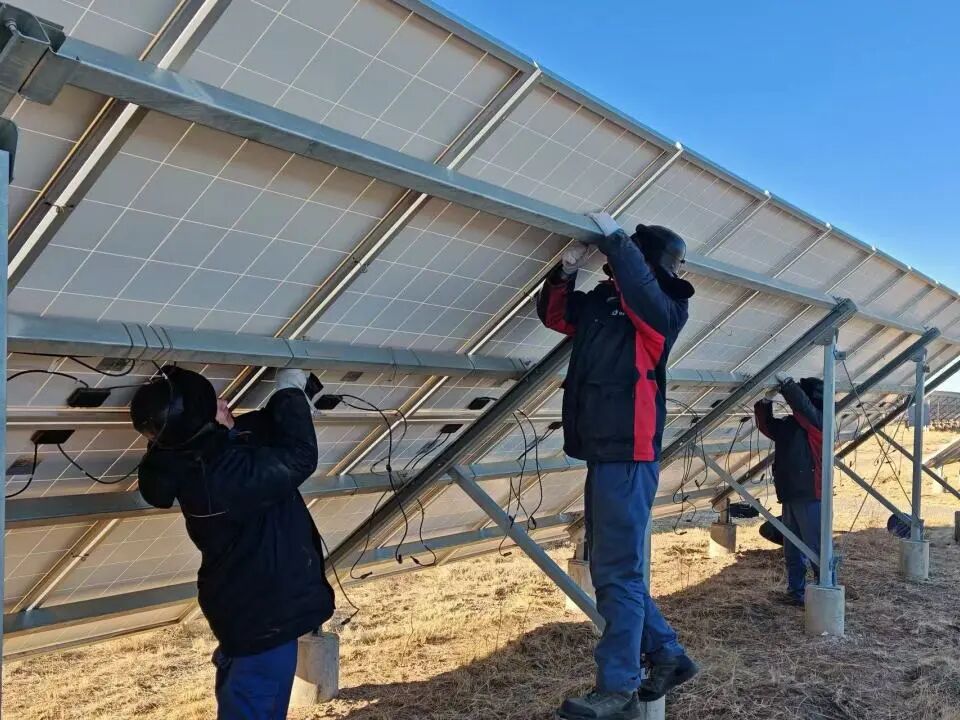 这里是清洁能源内蒙古分公司乌兰伊力更风光电站。开工第一天,我们把光伏组件擦得锃亮,仔细检查每一根接线,确保接头牢固、电压电流正常。