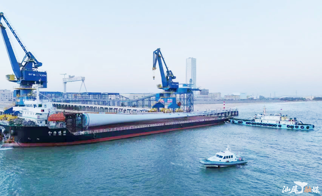 2025年11月29日,载有126米长风机叶片的“和海通X”甲板货船,从陆丰海洋工程基地码头平稳离泊,奔赴远海风电建设现场。