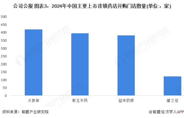 近年来,并购药店成为连锁药店企业扩张的捷径。2024年,大参林、漱玉平民和益丰药房并购药店数量均超过300家,4家上市公司合计并购门店数量超过1000家。