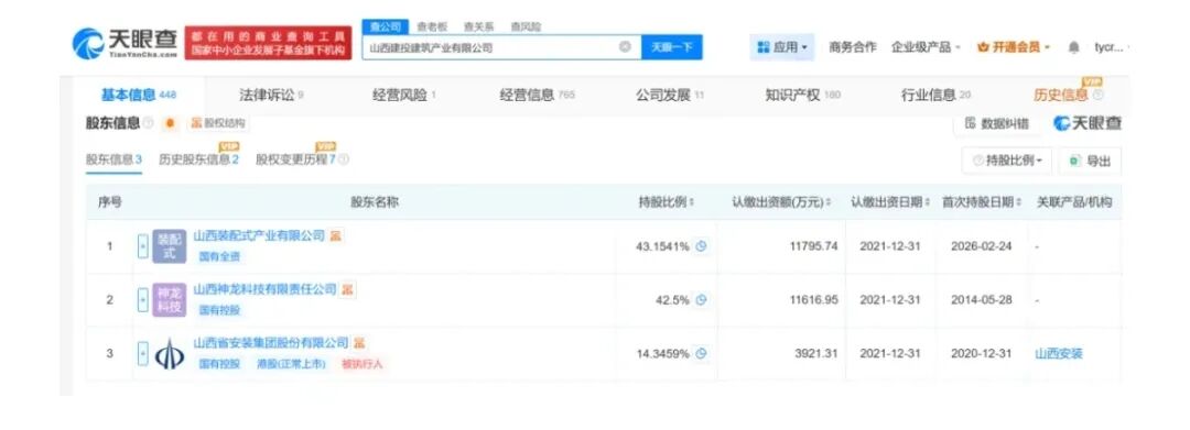 天眼查最新信息显示,2月24日,山西建投集团旗下山西建投建筑产业有限公司(下称“建筑产业公司”)完成控股股东变更,原控股股东山西园区建设发展集团有限公司(下称“园区建设集团”)退出,山西装配式产业有限公司(下称“装配式产业公司”)正式接棒,成为其新控股股东。