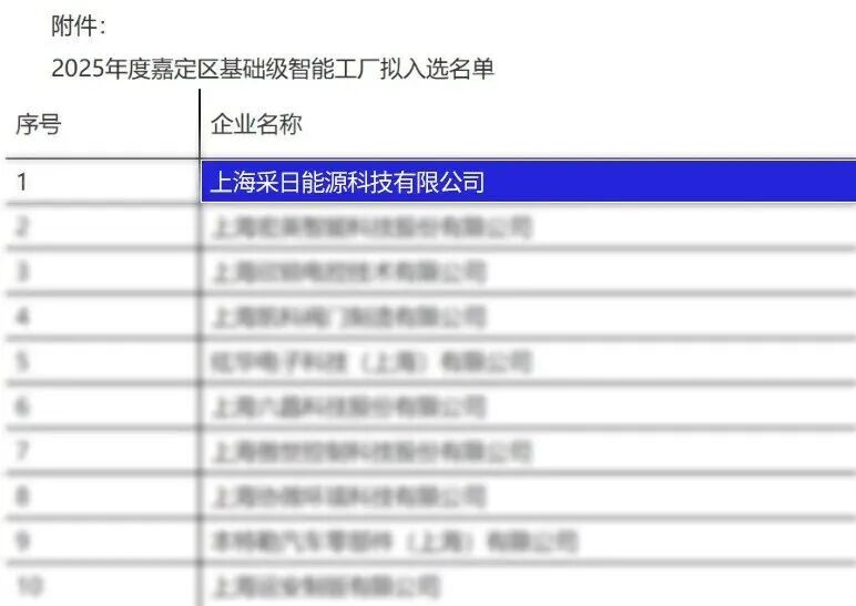 近日,上海市嘉定区经济委员会正式发布了《2025年度嘉定区基础级智能工厂拟入选名单公示》,采日能源凭借在智能制造领域的突出表现成功入选该名单,成为嘉定区推进制造业智能化转型升级的代表企业之一。