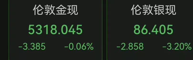 3月3日下午,现货白银突然再次闪崩,一度直线暴跌7%,现货黄金同步直线跳水,最新报5318.045美元/盎司。现货白银日内跌幅扩大至3.2%,报86.4美元/盎司。