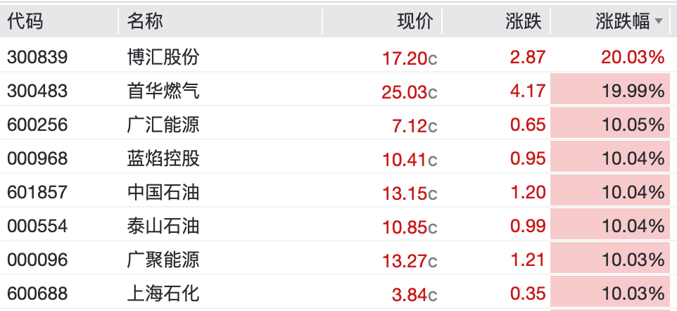 天然气板块集体爆发,成都燃气、贵州燃气、新天然气等十余股涨停。