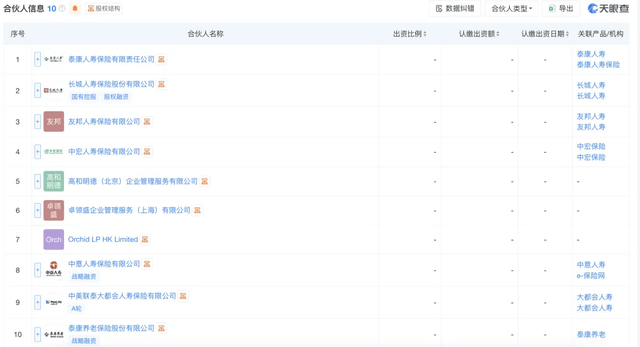 这家合资公司由高和资本旗下高和明德(北京)企业管理服务有限公司等担任执行事务合伙人。泰康人寿、泰康养老、长城人寿、友邦人寿、中宏人寿、中意人寿、中美联泰大都会人寿等7家险企作为有限合伙人共同出资。资金投向为北京、无锡、武汉三座荟聚购物中心的专项资产。