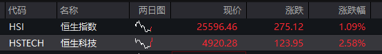 港股恒指涨超1%,恒科指涨超2%。
