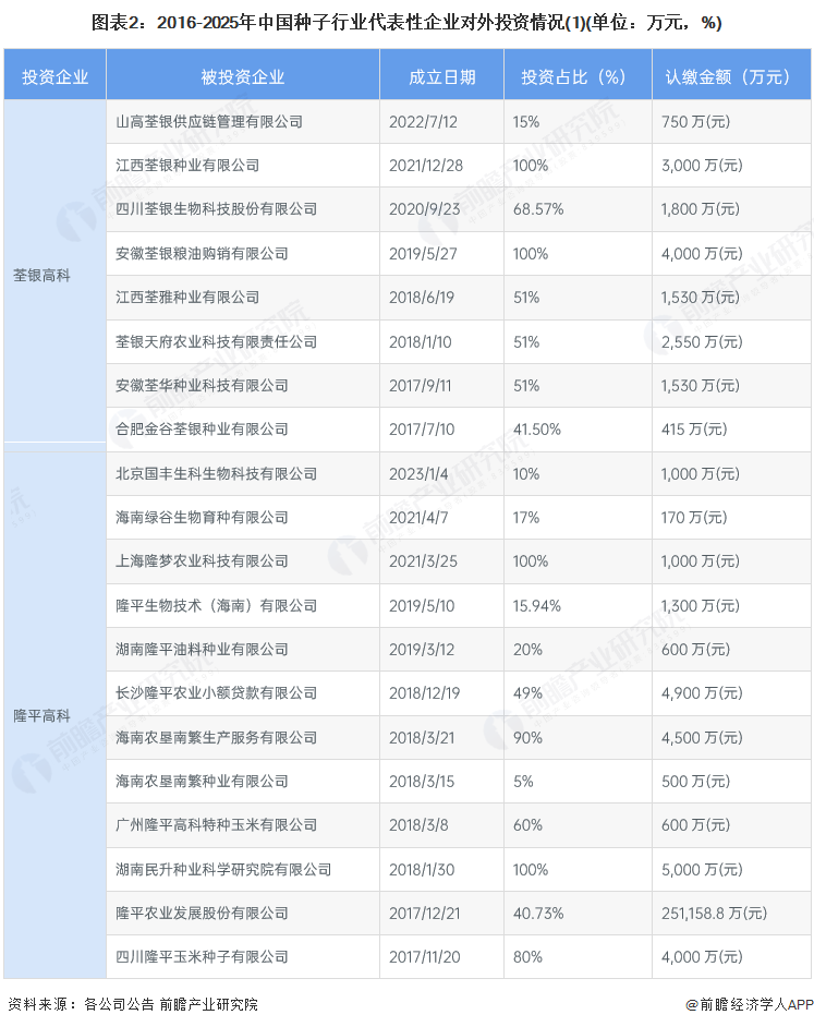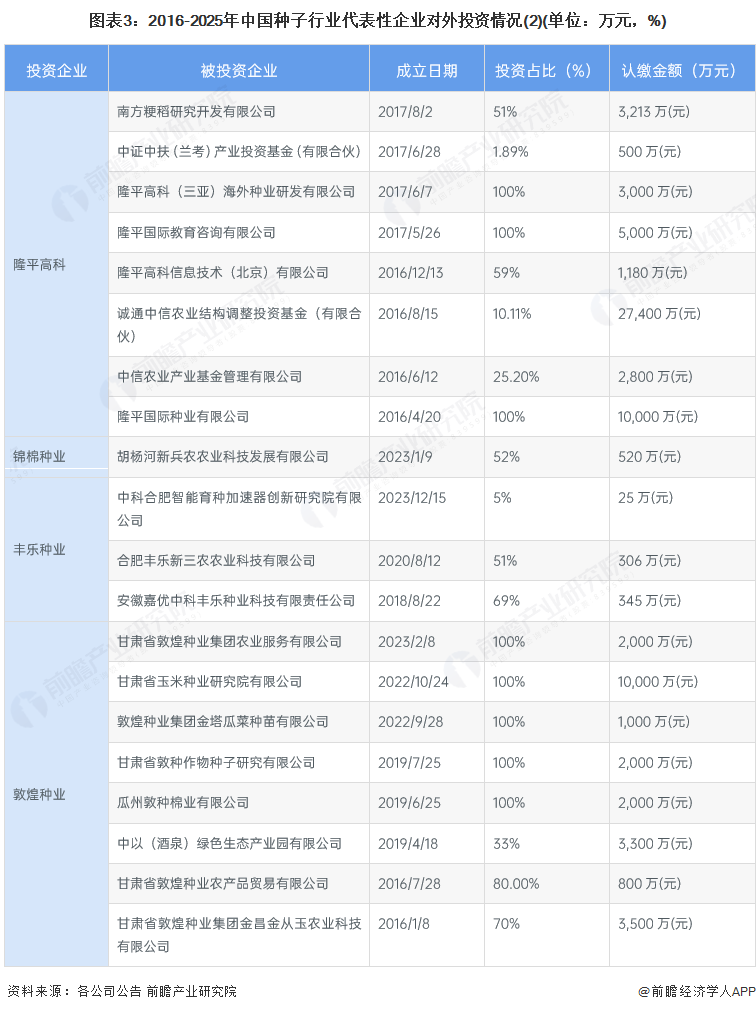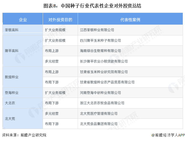 从几家代表性企业的对外投资目的来看,扩大业务规模、布局上下游较多,例如隆平高科在四川建设子公司四川隆平玉米种子有限公司,提升企业在四川的业务规模。