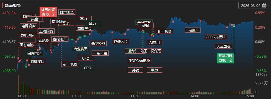 盘面上,市场重新炒作涨价题材股,草甘膦、环氧丙烷等化工股午后集体走强,卫星化学(002648)、红宝丽(002165)、红墙股份(002809)多股涨停。猪肉股盘中走高,牧原股份(002714)、温氏股份(300498)涨幅居前,此前消息称相关部门召开会议强化生猪产能综合调控。市场流动性改善,资金回归创新药等成长板块,荣昌生物大涨10%以上,中源协和(600645)等股封板。此外,电网设备、脑机接口、维生素等多个板块上涨。另一方面,霍尔木兹海峡封锁消息反复变化,油气、贵金属、煤炭等大宗商品股多数回调,通源石油(300164)、陕西黑猫(601015)、石化油服(600871)等股下挫。