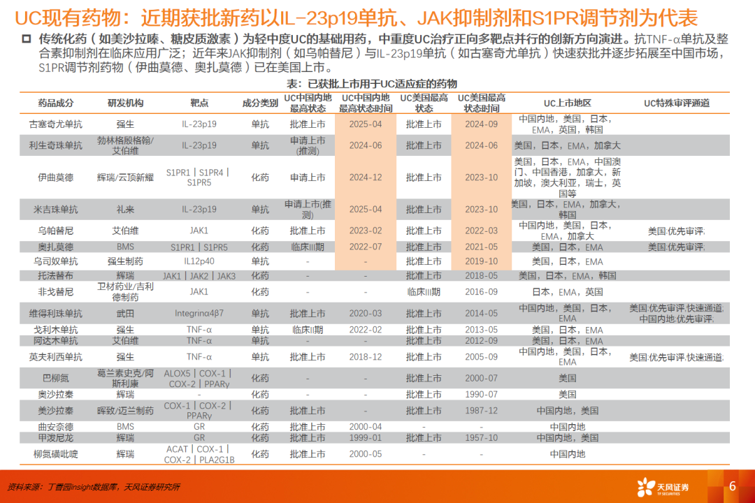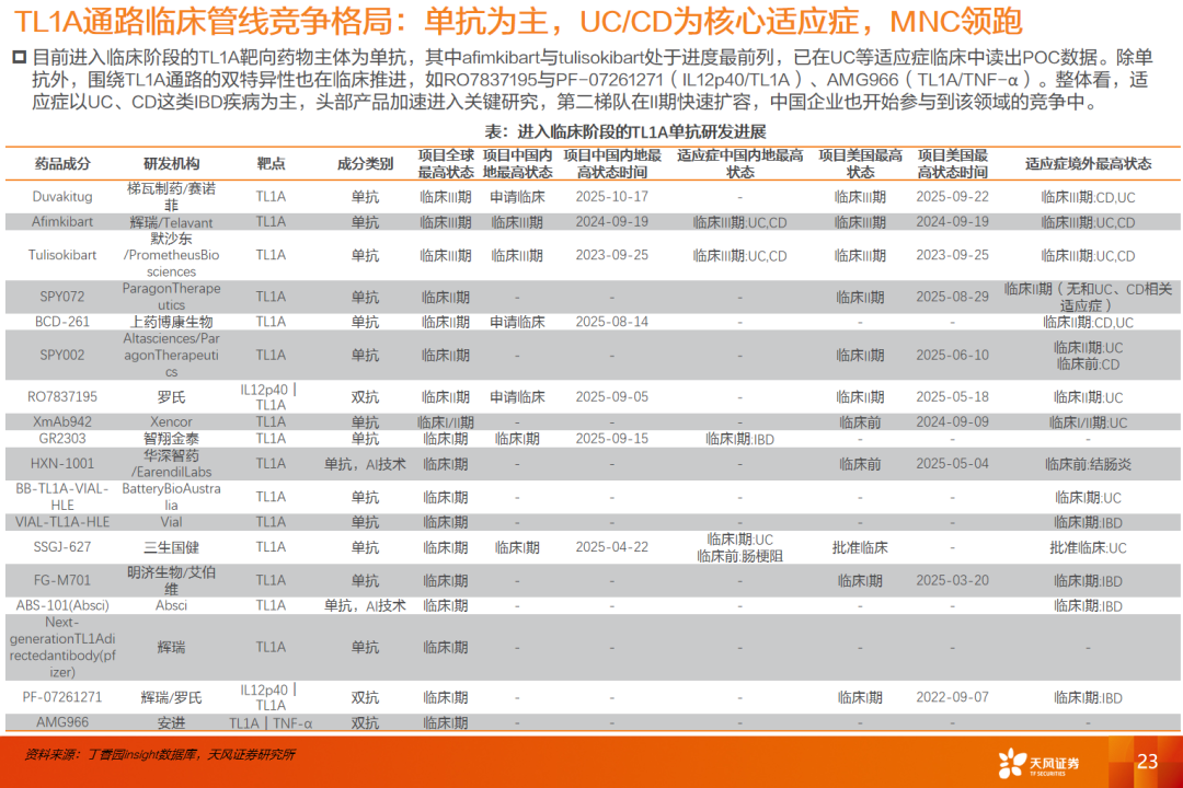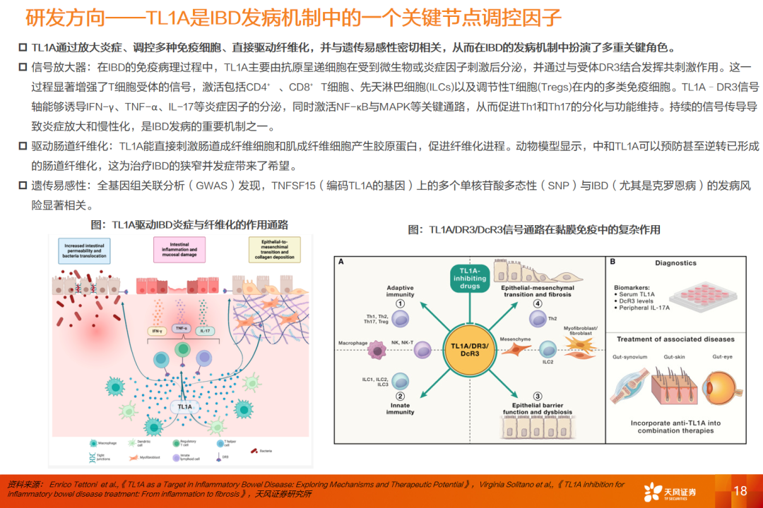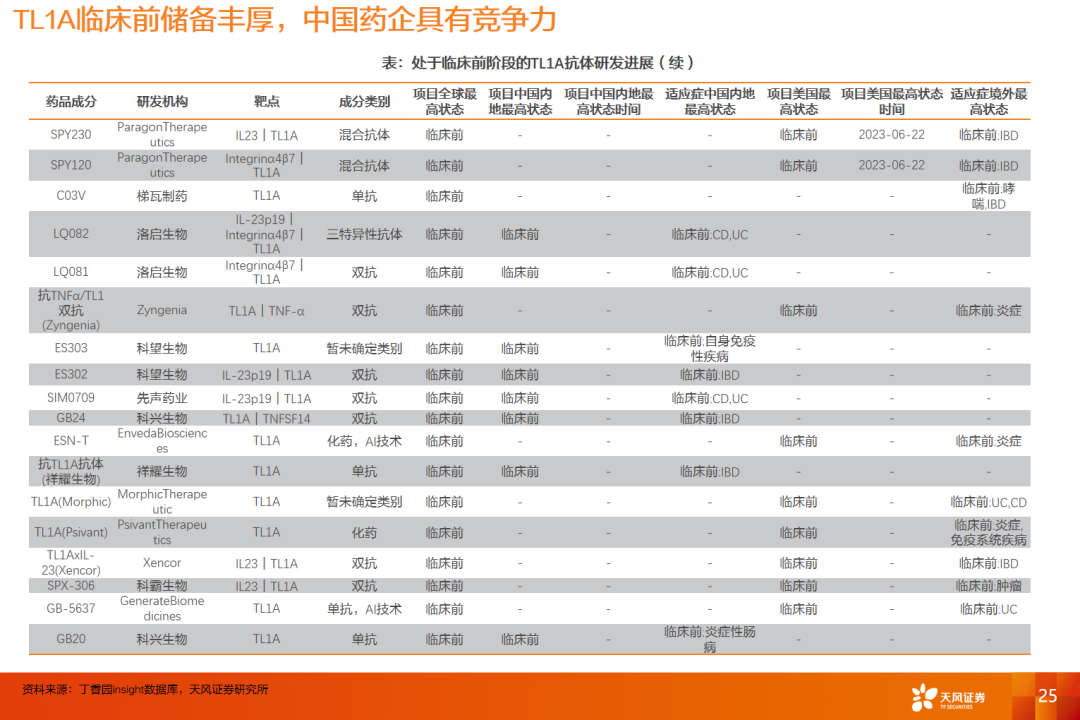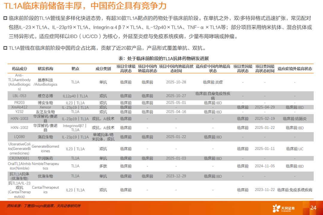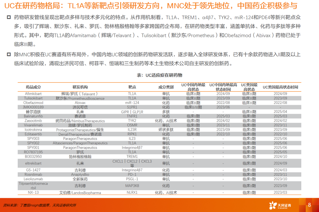在研药物中,TL1A、TYK2、PDE4等引领研发方向