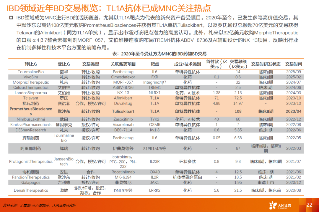 证券研究报告:《天风证券-医药生物:IBD行业报告(三)——研发路径愈发清晰,中国创新药公司有望深度参与》