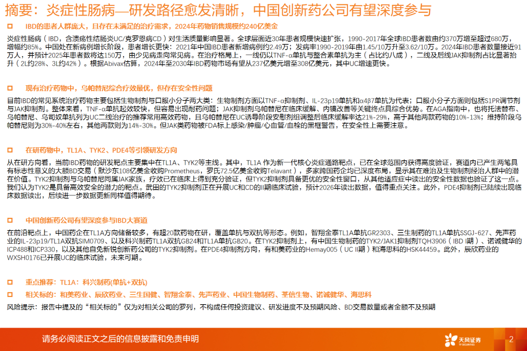 摘要:炎症性肠病—研发路径愈发清晰,中国创新药公司有望深度参与