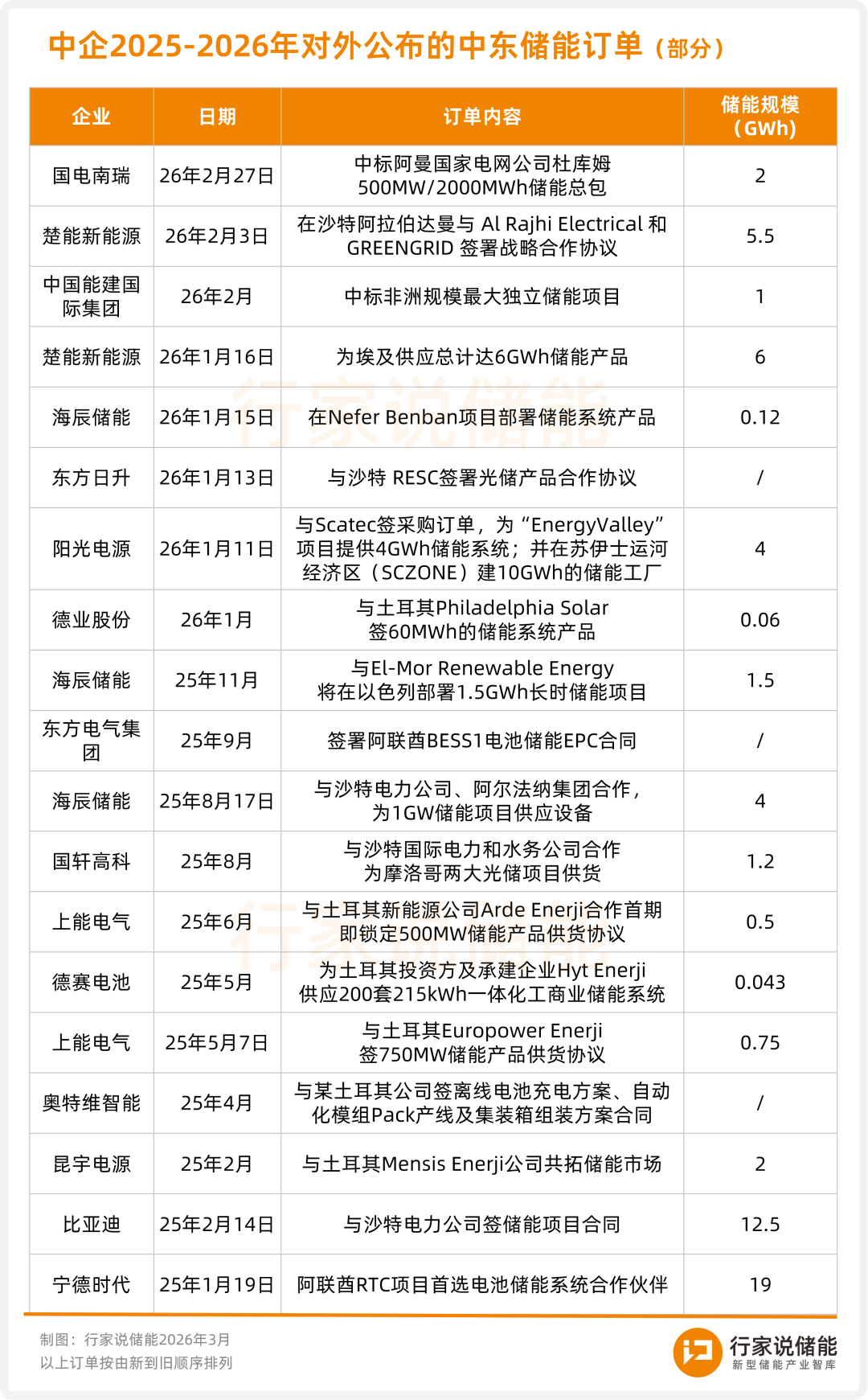 2026年以来,多家储能相关企业加速布局中东市场:
