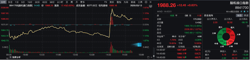 受该消息刺激,脑机接口板块今日尾盘快速走高。