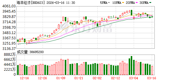 海洋经济板块3月16日表现亮眼,东方海洋、顺钠股份、尤夫股份、神开股份涨停;深水海纳大涨超10%。中科海迅、谱尼测试、中水渔业也涨幅靠前。