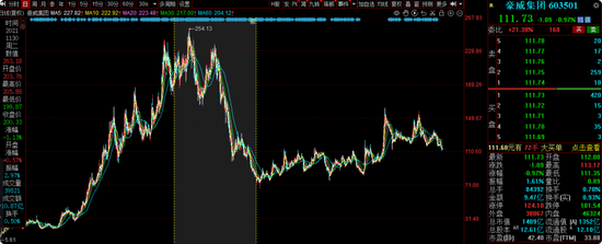 笔者发现,基金在2021年2季度买入80.00万股的韦尔股份(现用名豪威集团),2021年3季度持有125.00万股,2021年4季度持有108.00万股。2022年1季度持有100.00万股,2022年2季度持有88.00万股,到了2022年3季度所持股票已经被清仓。然而,在该基金持有期间,在2021年4月1日-2022年9月30日股票价格下跌了58%。