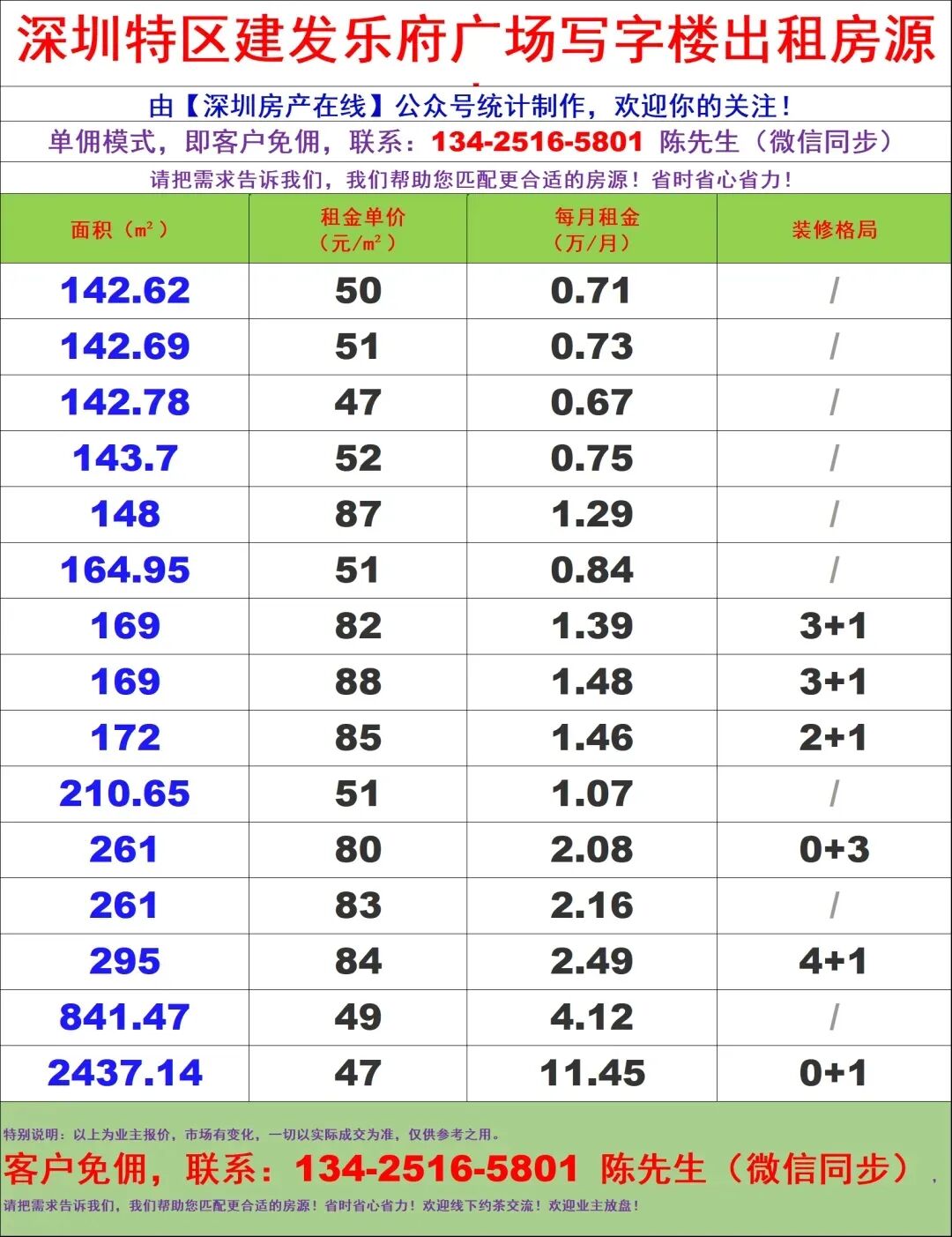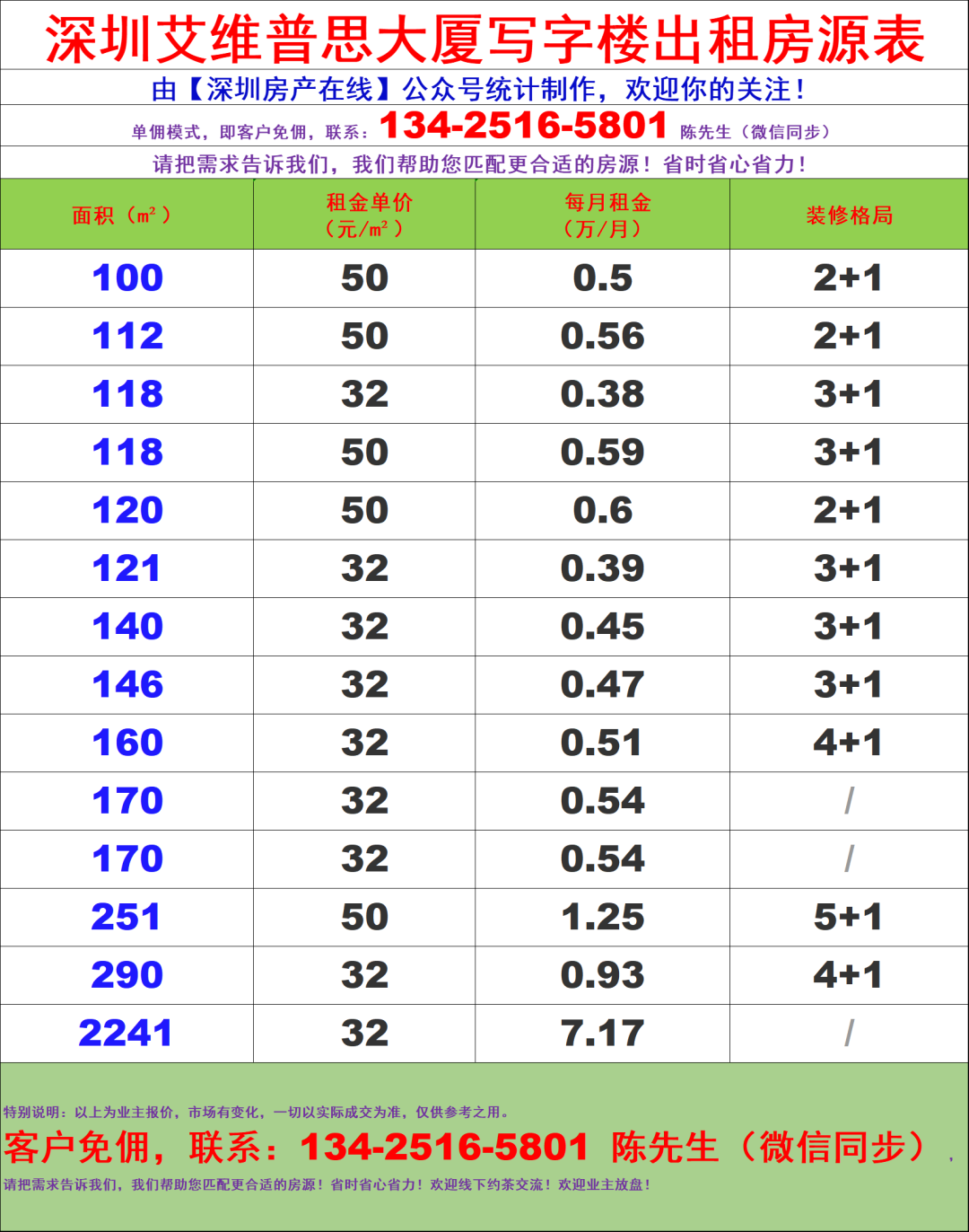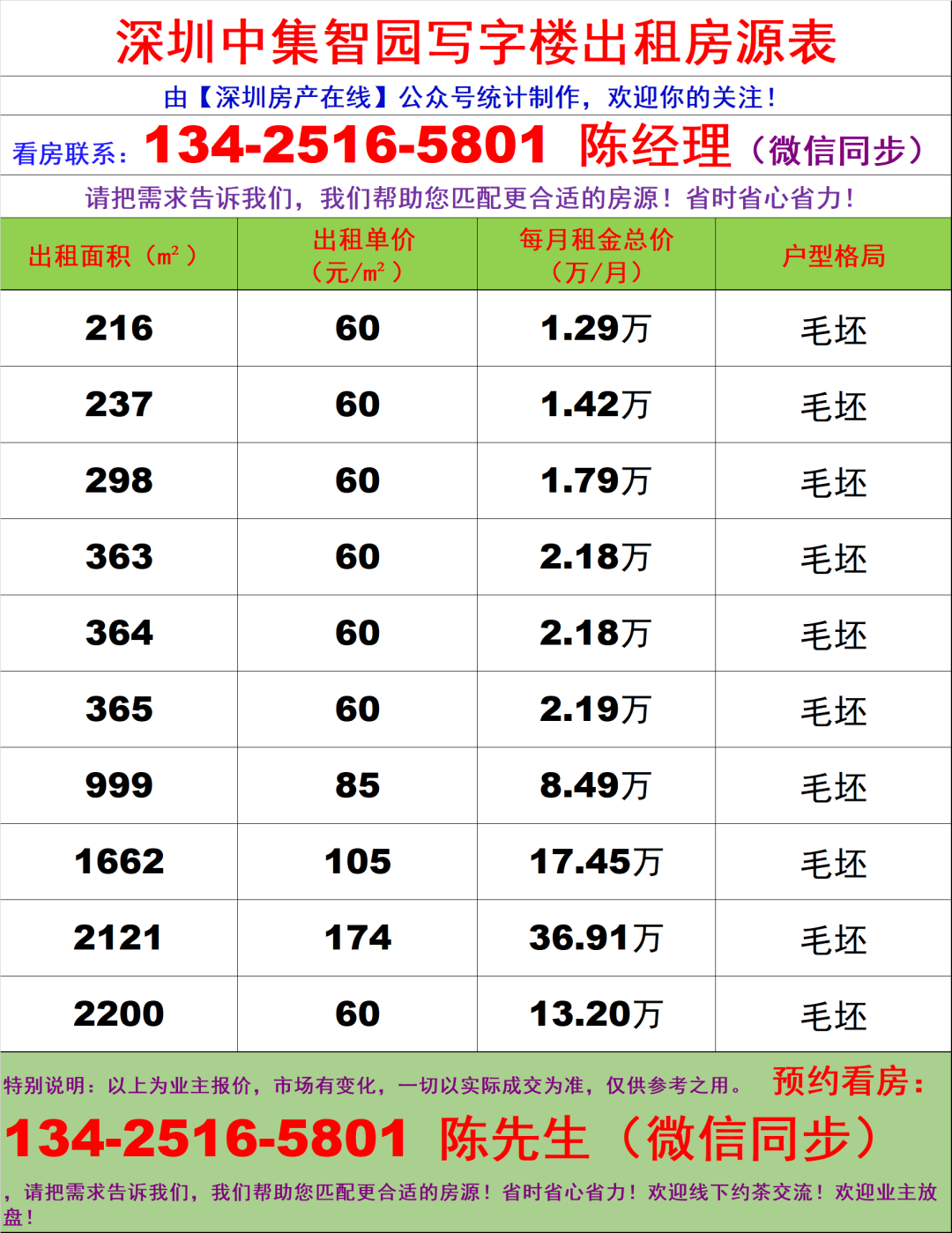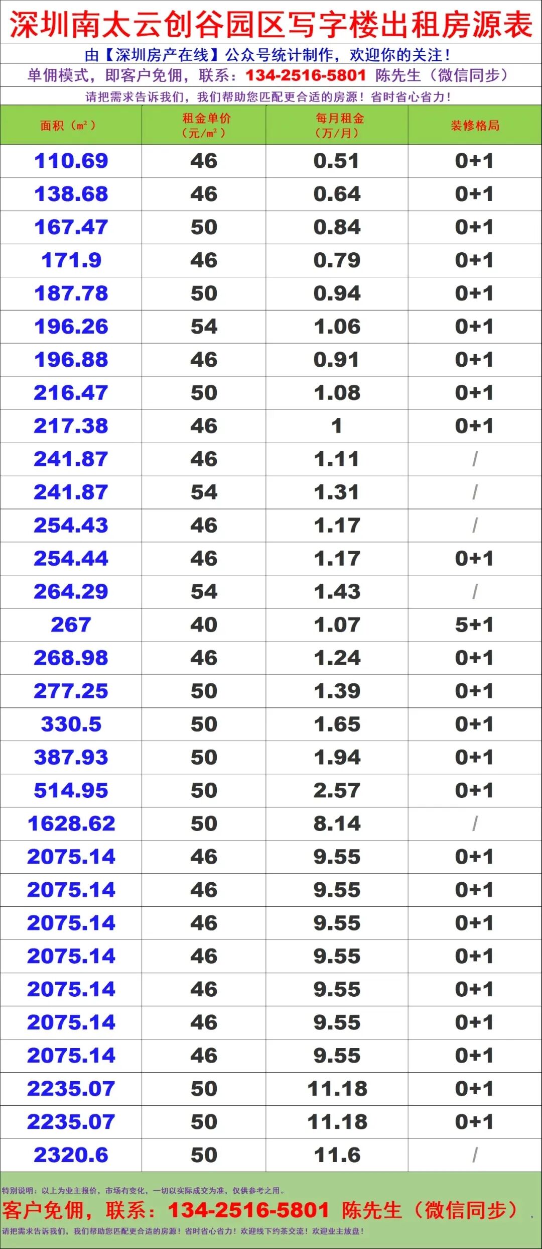 深圳光明区凤凰城写字楼办公室租赁租金价格表